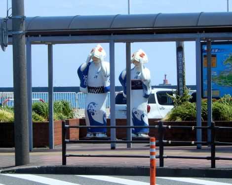 (承前) 前頁記事の続編、7月2日の記事です。 この日はトレンクルで加茂湖を一周するというのが当初予定でありましたが、そのトレンクルは新潟に預け置いたままに佐渡へとやって来たことでもあり、膝や腰の関節痛が心配であったこともあり、銀輪散歩もなしで、早々に新潟市内に戻ることとしました。 ホテルをチェックアウト、朝10時発の送迎マイクロバスに乗車し両津港へと向かいます。乗船予定のカーフェリーは12時35分発なので、両津出発まで2時間余の時間を潰さなくてはならない。(両津港・佐渡おけさの像) 取り敢えず両津大橋を渡り、道の駅へと向かう。 両津大橋を渡った先にレンタルサイクルをやっている店があったものの、2時間程度では銀輪散歩には中途半端。それに体調もイマイチの腰痛ヤカモチ、クーラーのきいた道の駅で休憩しようという魂胆であります。(道の駅・あいぽーと佐渡)(同上・多目的ホール) しかし、上掲写真の右端に写っている木製テーブル&椅子席に座って両津港の海を眺めていたものの、珈琲が飲みたくなり、タバコも喫いたくなりで、そう長くはじっとして居られず、道の駅での休憩は20分程度で切り上げ、佐渡汽船旅客ターミナルへと戻りました。 旅客ターミナル1階に喫茶店があったので、ここで珈琲タイム。 しばらく喫茶店で過ごしたものの、今度はタバコを喫いたくなる。 喫煙室は乗船口のある2階にあるだろうと見当をつけて2階に移動。 喫煙室でタバコを喫ったり、売店で土産物を物色したりして、時間を潰しているうちに昼食の頃合いとなったので、売店に隣接の食堂で昼食を済ませることとしました。 乗船待合室に行くと、椅子席のほかに寝そべることのできる板の間だか畳の間だかがあったので、そこでごろりと横になって、乗船時間までを過ごすこととする。 そして、乗船の時間となりました。(道の駅・あいぽーと佐渡<ときわ丸船上から>) 帰りも船はときわ丸。おけさ丸というのもあったかと記憶するが、今回は往復共にときわ丸でありました。 いよいよ、両津港を出港します。 右舷甲板からは、先ほど立ち寄った道の駅・あいぽーと佐渡が見渡せる。(両津港・金北山を望む) 上掲写真中央の橋が両津大橋。背後の高い山が金北山。 まだ、ブログなどを始めていなかった頃、1995年の夏に金北山をトレッキングし、下山の時に道に迷って大変な思いをしたこともあったが、それは30年も昔のことで、もうそんな山登りはとても無理な今のヤカモチの足腰の状況であります。(カモメ)(同上) 海面に目をやると着水しているカモメの姿も。(両津港出航・旅客ターミナル) 左舷側甲板に回ると、カモメに何やらエサを与えている乗船客も居て、それを目指してカモメが集まって来ている。(同上)(高速船のジェットフォイル)(道の駅・あいぽーと佐渡)(両津港と佐渡汽船旅客ターミナル)(カモメの群舞) 5階屋上デッキでもカモメにエサを与えている乗船客が居るようで、見上げるとカモメの群舞。(同上)(ホテル・あおきや<右側>遠望) 肉眼では判別できなかったが、カメラをズームアップするとお世話になったホテル・あおきやが船上からも良く見えていました。 帰りも4階の2等船室で、ごろり寝そべっての船旅です。(5階、屋上デッキ)(同上) 途中、喫煙室にてタバコを一服したついでに5階屋上デッキに上がってみました。(同上・船尾) 以上、まことに中途半端で不本意な佐渡銀輪散歩でありましたが、終了であります。 この後、新潟に戻って、38.6度の発熱に見舞われるなどということもありで、今回は体調面で色々と問題の多い散々な旅行となってしまいました。 それでもコロナ、インフルエンザの検査は幸いにも陰性で、ただの風邪であったよう。熱も下がり無事に帰阪することができましたので、やれやれでありました。 旅に病んで 痛みはふしぶし かけめぐり 越後も佐渡も 夢のまた夢 (偐蕪蕉) ということで、佐渡銀輪散歩記事も、不本意な銀輪万葉記事となりましたが、一応完結であります。(完)<参考>銀輪万葉・新潟県・長野県篇