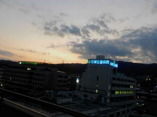 今日で入院6日目です。 7月23日入院。入院当初からずっと点滴を継続。(入院病棟4階の部屋から7月24日撮影)(同上) 当初の部屋は4階であったが、25日11時に5階の部屋に移動。(入院病棟5階の部屋から7月25日撮影) 入院4日目となる26日になって、やっと点滴から解放されました。 点滴継続の間は上衣の着替えをしようとすると、看護師さんを呼び、点滴の管を外してもらう必要がある。 従って、寒いから1枚上衣を重ね着するとか、暑いから上衣を薄いものに着替えるとか、そういうことが自由にできないので、頗る不便なのである。 尤も、抗生剤点滴は生検直前まで続けられるようなので、右手首の点滴用注射針はそのまま残されている。 抗生剤点滴は朝夕2回30~50分程度の短時間に行われるだけなので、ストレス・フリーである。(7月28日撮影、日の出前の生駒山)(同上) 目下の状況は、胃の調子が悪く食欲は全くなし、食べると吐き気に襲われるという感覚があるので、食後の薬を呑むためにだけ、少しばかりを食べているといった感じです。 また、関節痛は相変わらずで、腰背面左右、左右膝、左右太腿、右足首に常時痛みがあるのだが、痛み止めの薬が効いているのだろう、立ち上がったり、坐ったりする場合を除き、余り気にならないレベルの痛みである。 しかし、時にはこの痛みが激しいものとなり、呻き声を上げてしまうこともあったりする。 時々、発熱もあるが、多くは38度以下の微熱レベルである。 痛み止め薬の副作用で眠気に襲われていることが多く、頭はいつもぼんやりした感じであります。(同上)(同上) ということで、眠くなってきました。 以上、入院レポート第2号であります。