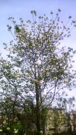 自宅から上本町までは1時間弱、丁度よい運動である。帰途にいつもの通り、花園中央公園に立ち寄ると、ハナミズキが白い花を咲かせていた。この花が咲くともう初夏という気分になるのであるが、今年はやはりどの花も例年より開花が早いように思われますな。