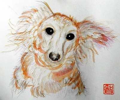 クウ君は小万知さんちのワンちゃんですが、生き生きとした真っ黒の目と鼻の表情がいいですね。智麻呂氏は「花」の画家だけあって「鼻」を描くのも得意なようですな。