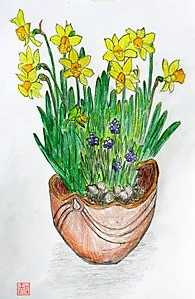 上の水仙Bと下の「クウ」は、小万知アルバムの写真から絵にされたものであります。水仙も智麻呂氏の好きな花の一つだそうな。もっとも、智麻呂氏の好きな花というのは数え出すとキリがないというものではありますが(笑)。