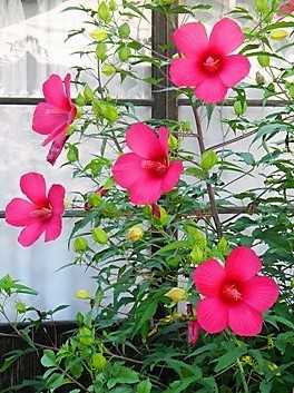 芙蓉の花かと写真に撮りましたが、今よく見ると葉の形状が違いますな。葵の仲間かムクゲの仲間かよくは分りませぬが、美しい花にて、道の辺にひと際目立って咲いているのでありました。