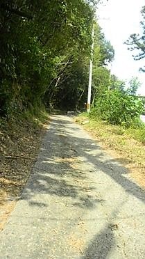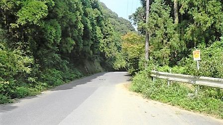 (一般道に出ると上り坂。左が疏水の流れている谷である。13:30)
