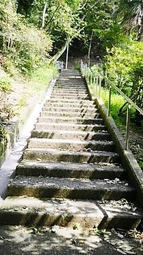 天智天皇陵から御陵に沿っている細道をうねうねと行くと、琵琶湖疏水の道に上る石段の前に出る。