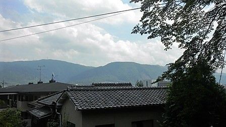 (琵琶湖疏水から南方面、音羽山を望む。)