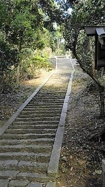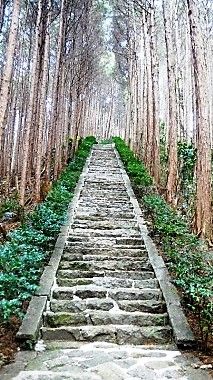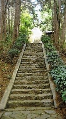 見覚えのある石階段が見えました。延々とある階段。自転車は階段の途中で停めて登ることとする。