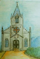 上記写真のうち、「崎津カトリック教会」の(当初の絵)の写真は、これについてのフォト蔵登録写真が2018年8月に消失し、その復旧もできなかったようで、この部分の写真がブログ上は非表示となっていました。元画像も原画も手許に存在しなかったのですが、画像消失以前に本記事を印刷に打ち出したものが存在したので、それを再度撮影し、その画像をブログ記事に貼り付けることとしました。そんな次第で、画像が不鮮明になっていますが、ご容赦願います。(2018年8月2日)