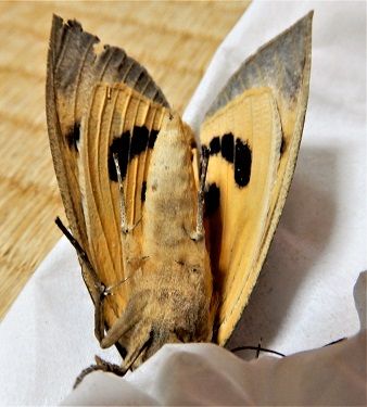 翅を広げたところを撮りたいが、それは一瞬のことにて、カメラが追い付かない。さりとて無理に広げてというパワハラはしたくないので、つかまっているティッシュを回転させて仰向けにさせて撮ったのが次の写真。
