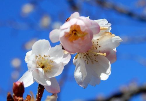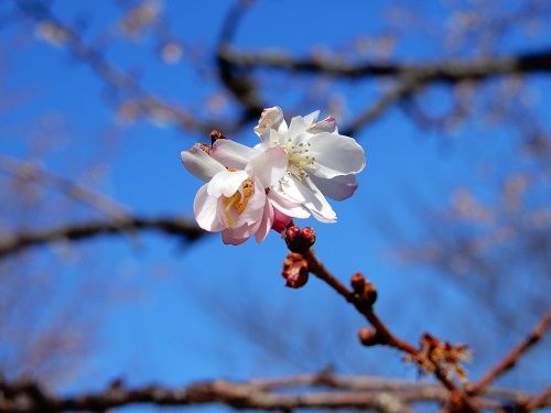 桜広場の桜木は勿論まだ蕾は固いのであるが、そんな中に花を咲かせている桜の木が数本ありました。早咲き品種の桜である。早咲きの品種と言えば「河津桜」などしか名前が思い浮かばないが、これがそうであるのかどうかは、分からない。