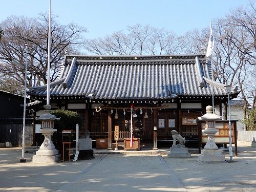 ということで、本日はこの神社を訪ねて銀輪散歩することとしました。朝10時5分に自宅を出発。花園中央公園の前を通り、近鉄奈良線に沿った道を西へ、瓜生堂西交差点で中央環状道路に入って、これを南へ。久宝寺緑地の先、神武町交差点で左折、東へ。1kmほど行った処を左に入ると許麻神社である。神社到着が10時52分であるから、所要時間47分という近さ。