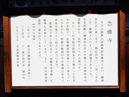 許麻神社境内の説明碑に記してあった、久宝寺観音院の本尊・十一面観音像が安置されているという念仏寺も覗いてみることとする。