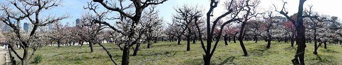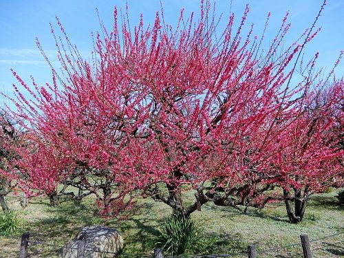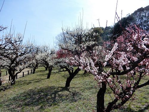 梅の木を1本、1本眺めるのもいいが、高い場所から全体を眺めるのもいい。