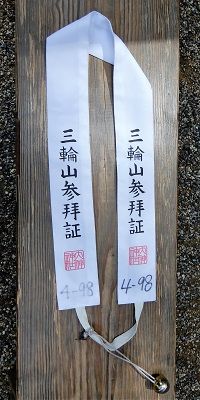​​ 拝受付口でお借りした「三輪山参拝証」 (下掲) ​を首に掛けて登拝します。​