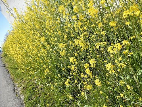 橋の東詰めの道路脇には菜の花も彩りを添えていました。
