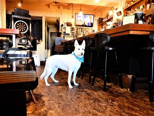 外は炎暑。途中で朝に立ち寄った喫茶店で暫し彼とお喋りしながら涼むことに。上述の通り、犬の居る喫茶店である。​