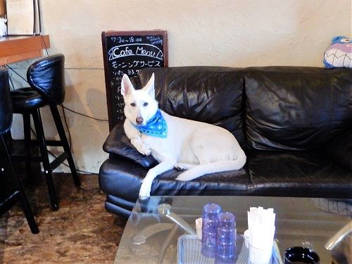 喫茶店の名前は忘れたが、大きな白いシェパードが店内に居るという面白い喫茶店でした。15分ばかり、アイスコーヒーを飲みながら店内で涼む。