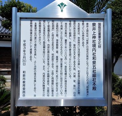 ​ 鳥居を潜って直進すると、正面にあるのは、の泉井上神社の本・拝殿ではなく、境内社の和泉五社総社の拝殿である。​