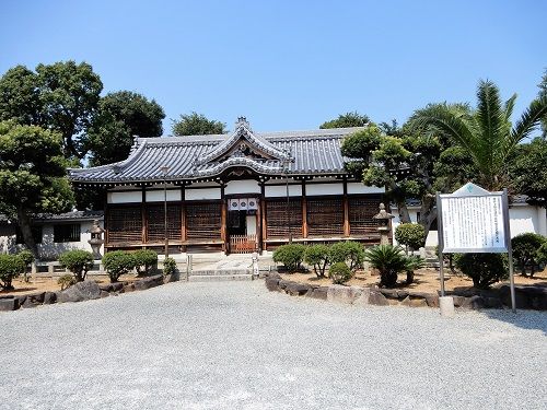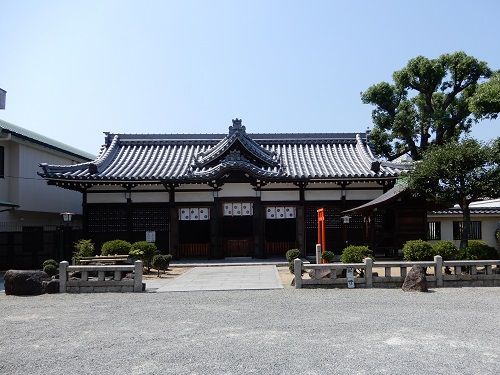 神社の南側の細道を東へ行く。南海電車の踏切を渡り、府道30号と府道新30号の中間にある旧道を南へ走る。