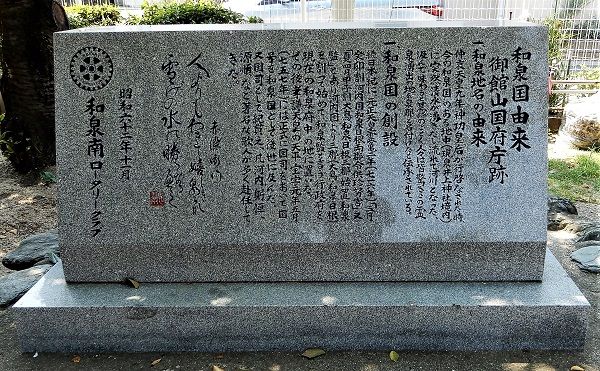 泉井上神社から500mほど東に行くと御館山公園という小さな公園がある。此処に和泉国庁趾の碑がある。泉井上神社も含めこの付近一帯が和泉国の国府、国庁であったのでしょう。​