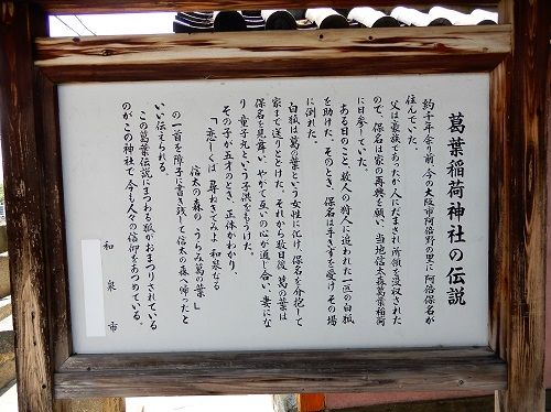 聖神社から信太森葛葉稲荷神社に向かう処で終わりましたので、そこから始めます。聖神社はかなり高い地にあるので、一気に坂を下ることになる。予定では、坂の途中、未だ高い位置の府道新30号を南に進み突き当りで右に曲がり西に下り、幸小学校南で左折、細い路地を進んで和泉中学校前で府道30号(旧)に合流という段取りであったのだが、信太の森のもう一つの候補地、信太森葛葉稲荷神社をやり過ごしては平仄を欠くことになると言うもの。新30号の広い道を渡り、次の道で右折し、中央寺の先の辻を左折、南海電車本線の踏切を渡ると信太森葛葉稲荷神社前である。