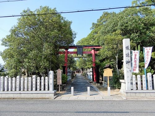 踏切から600mほど来たところで、右手に何やら由緒ありげな神社が目に入ったので立ち寄ってみた。