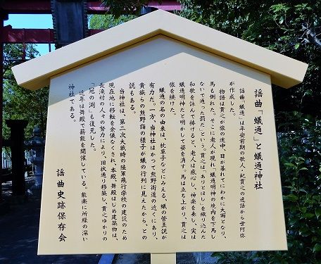 鳥居前の木製の碑には謡曲「蟻通」のことが紹介されている。