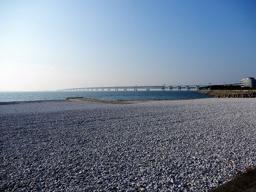 (マーブルビーチから関空大橋と関西国際空港を望む)