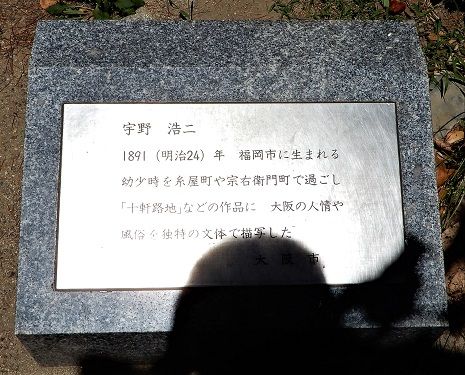 公園の一角に何やら石碑があるので、近寄ってみると、宇野浩二の文学碑でありました。この作家の作品は読んだことがないが、その名前だけは存じ上げている。​
