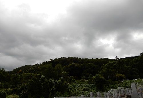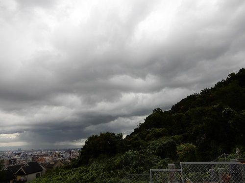 北の方に目を転ずると、大東市か寝屋川市か門真市か、そちらの方面にも雲がかかって雨を降らせているよう。​