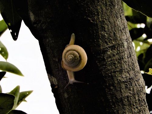 墓参の道でカタツムリに出会うのは初めてのこと。晴れた日に墓参をするのが普通なので、カタツムリ君に出会うことはないのだろうが、今日は珍しく雨上がりであったことで、出会ってしまったのだろう。