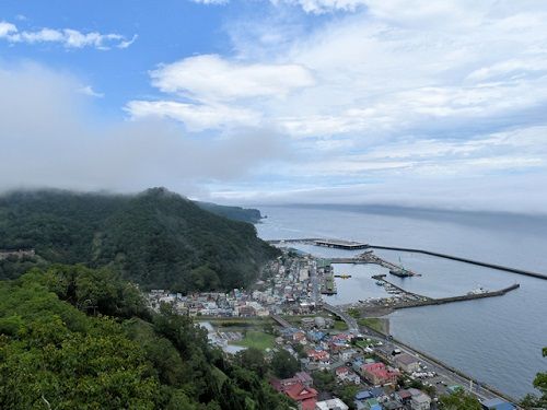 ​霧多布湿原見て霧多布岬、海霧発生が見える。」