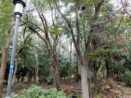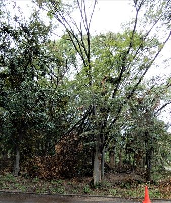 台風が去って、既に8日が経過しているので、かなり片付いてはいるのでしょうが、それでも未だこのような形で残骸をさらしていますから、かなり沢山の木々が折れたり、倒れたりしたようです。