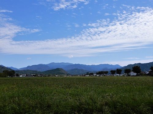 横雲がたなびき、空は秋の風情であるが、銀輪散歩としてはもう少し気温が低い方が快適であるだろう。