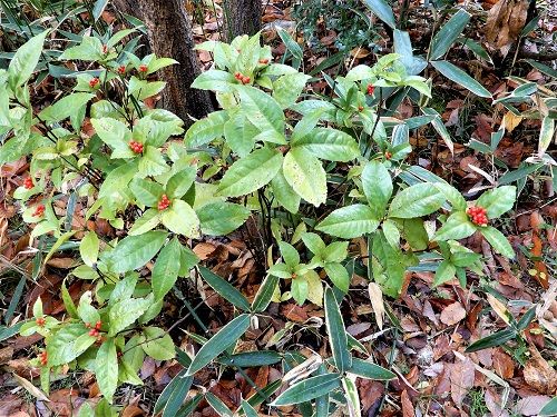 この雪の 消 残る時にいざ行かな山橘の実の照るも見む(万葉集巻 19-4226 )