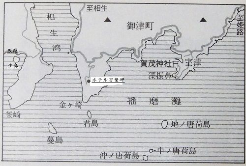 (坂越湾 左は生島、奥は家島、右は黒崎、赤穂御崎)