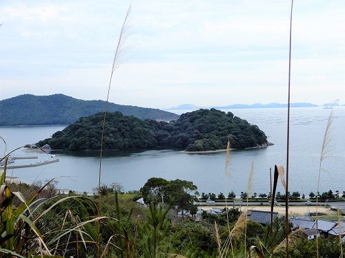 生島や坂越港を見下ろすが高度が低いので、上の碑の写真のようには見えない。もう少し高い場所に行かなければならないかと、そのまま、ハイキング道を上り始める。神社の方に戻るつもりであったのに、そのことはすっかり忘れ去っていました。