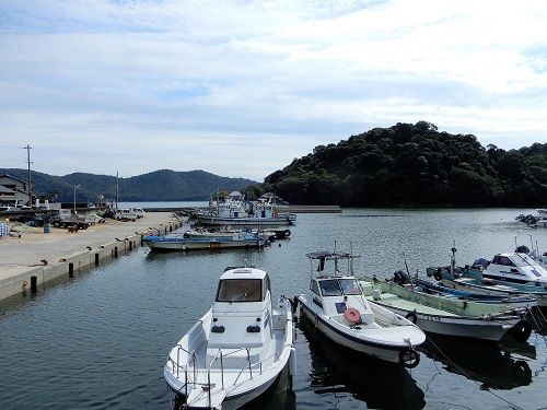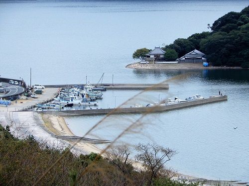 向かいの生島が波よけになっている天然の良港。