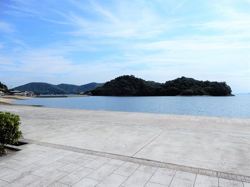 向かいの生島には秦河勝の墓があるそうだが、島全体が大避神社の神域となっていて人の立ち入りを禁止しているから、どのような墓なのか確かめようもないが、遠目からは島そのものが前方後円墳のようにも見える。