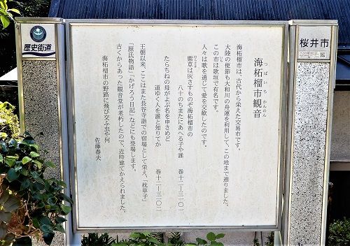 この歌碑は、直近では友人の偐山頭火氏との銀輪散歩の時に撮影したのではないか、と過去記事を探してみるも見当たらず。撮ったつもりで撮らなかったのか。海石榴市観音堂にもその折に立ち寄った筈なのだが、記事が見つからない。どうも人間の記憶というものはかくも不確かなものであるか。