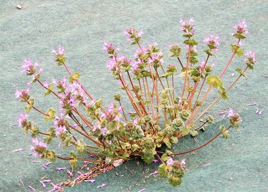 かくて、見事なホトケノザだけの株が現出。まるで展示されているような風情で、野草ではないみたいです。