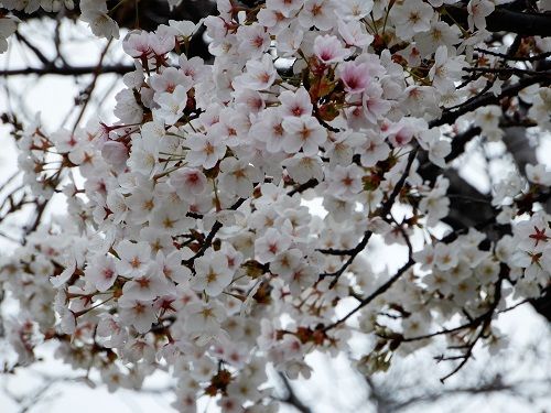 しかし、この桜の木、ソメイヨシノとは異なる品種なんだろうか。随分見事に咲いている。