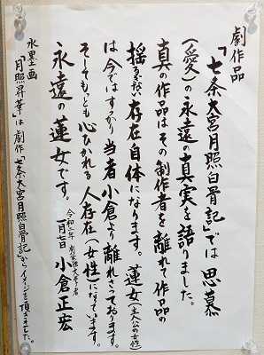 この作品は、この邂逅展の主宰者であったドイツ文学者・劇作家小倉正宏氏の劇作品「七条大宮月照白骨記」からのイメージ喚起により描かれたものであるらしく、下掲のような添え書きが付されていました。