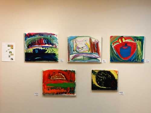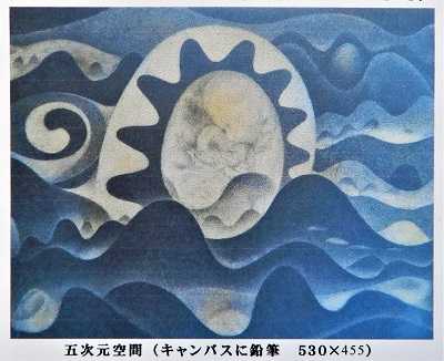以下は、会場で撮影したものではありませんが、「自由にお取りください」と会場に置かれていた、出品者の作品を印刷した葉書に掲載の絵画を、帰宅してから撮影したものであります。
