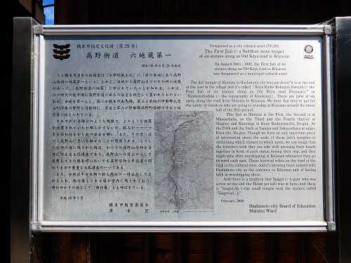 下掲の説明碑によると、当地(橋本市清水)から高野山までの6ヶ所に地蔵があって、「高野街道六地蔵」と呼ばれていたらしい。その第一の地蔵がこの地蔵堂のお地蔵さんだというのである。