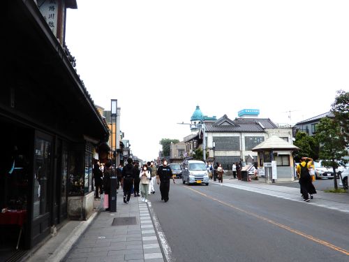 中央通りの仲町交差点から札の辻交差点までの450mほどが「蔵造りの町並み」の続く、川越一番街商店街で、人気のエリアということもあって、道を行く人の姿も多くなる。