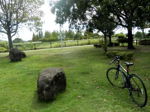 上掲写真の奥へ進むと花園中央公園に突き当たります。