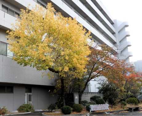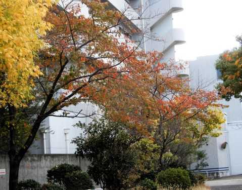 喫茶・ペリカンの家の道路向かいは、石切生喜病院の入院病棟。ヤカモチも何度かお世話になっている病棟であるが、その西側の庭には秋がありました。