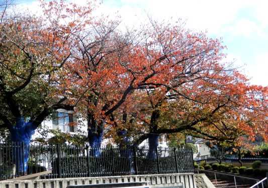 自宅までの途中にある、老人センターの庭の桜葉の紅葉です。