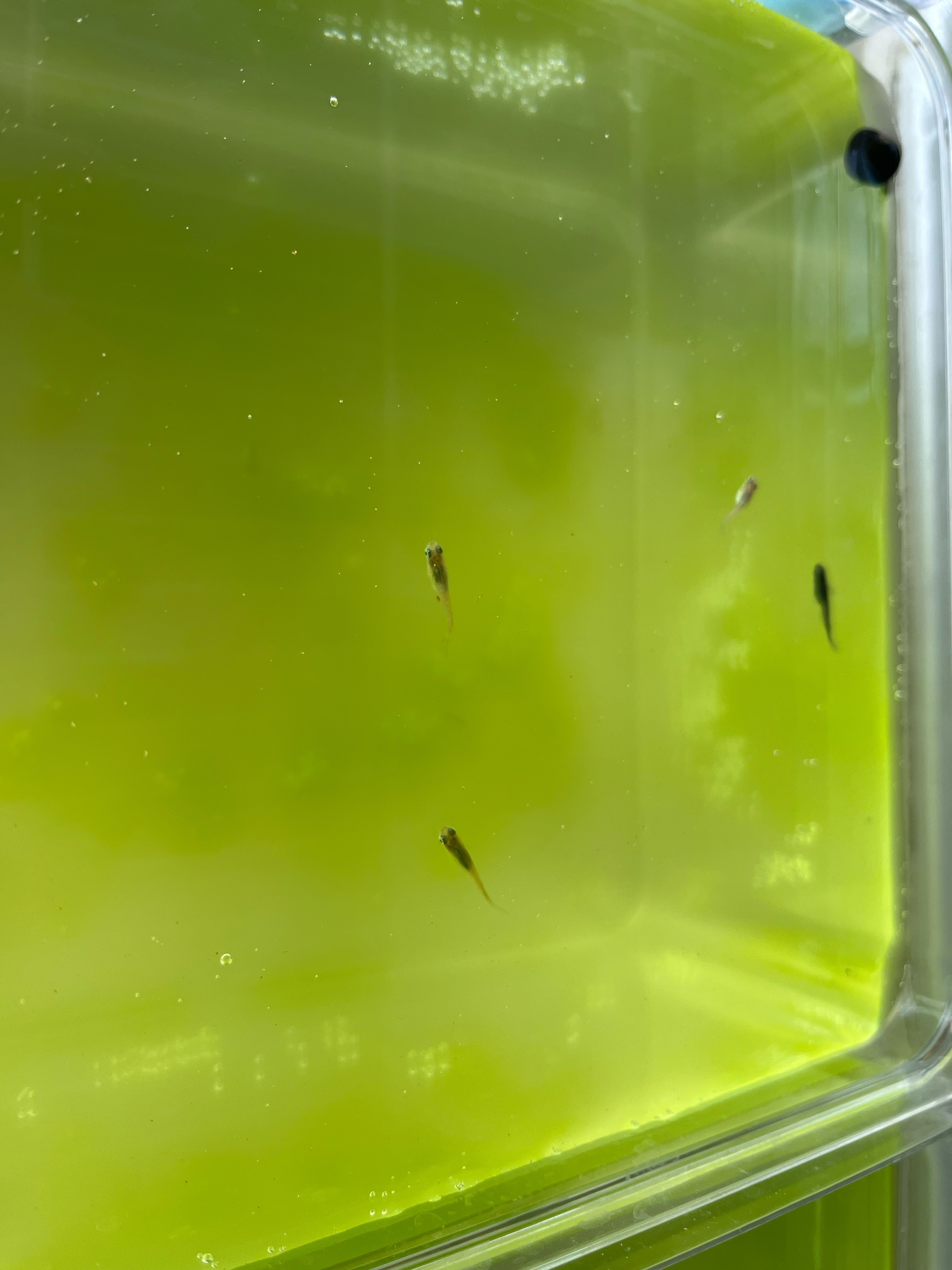 野外ではダイソーのプラスチックケースで稚魚を育てています。