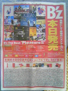 【B'z】/B'z The Best “Pleasure II”、発売日が決定した頃に掲載された、松本引越しセンター&イナバ物置とのコラボ広告(読売新聞 カラー2ページ)がありましたが、発売日当日の朝日新聞と読売新聞に、再びカラー広告が掲載されました!その2紙が、自宅(朝日新聞)と会社(読売新聞)で手に入るので、それぞれを携帯電話のカメラで撮影してみました朝日新聞↓読売新聞↓でも、何で違う内容にしたんだろう...?ちょっと してみませんか?リンク先の企業が代わって募金をしてくれます募金ご協力ありがとうございますぅ~ついでにコチラもclickしてみませんか? ※当ブログは、動く顔文字を使用しているので、携帯で見た場合それらが表示されずに文章等が分かりにくい場合があります。ご了承ください